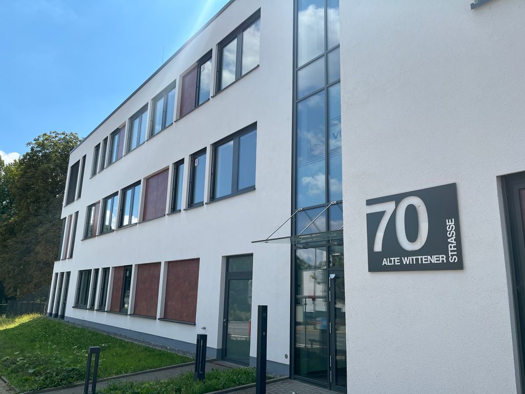 After leaving the parking garage, please keep to the right. Follow the road until you reach the next opportunity to turn right again. There you will find an entrance with a staircase leading down. At the end of this staircase, you will reach the building where our offices are located.